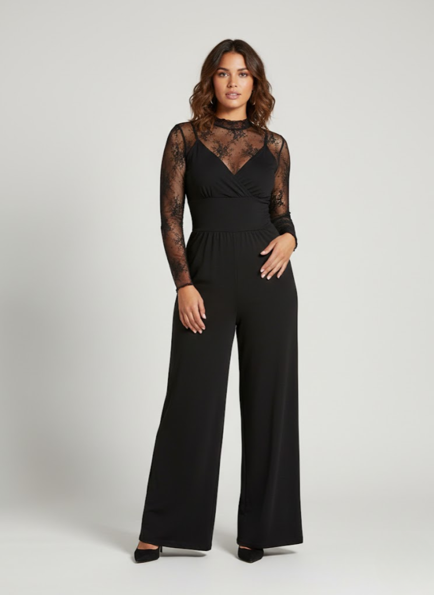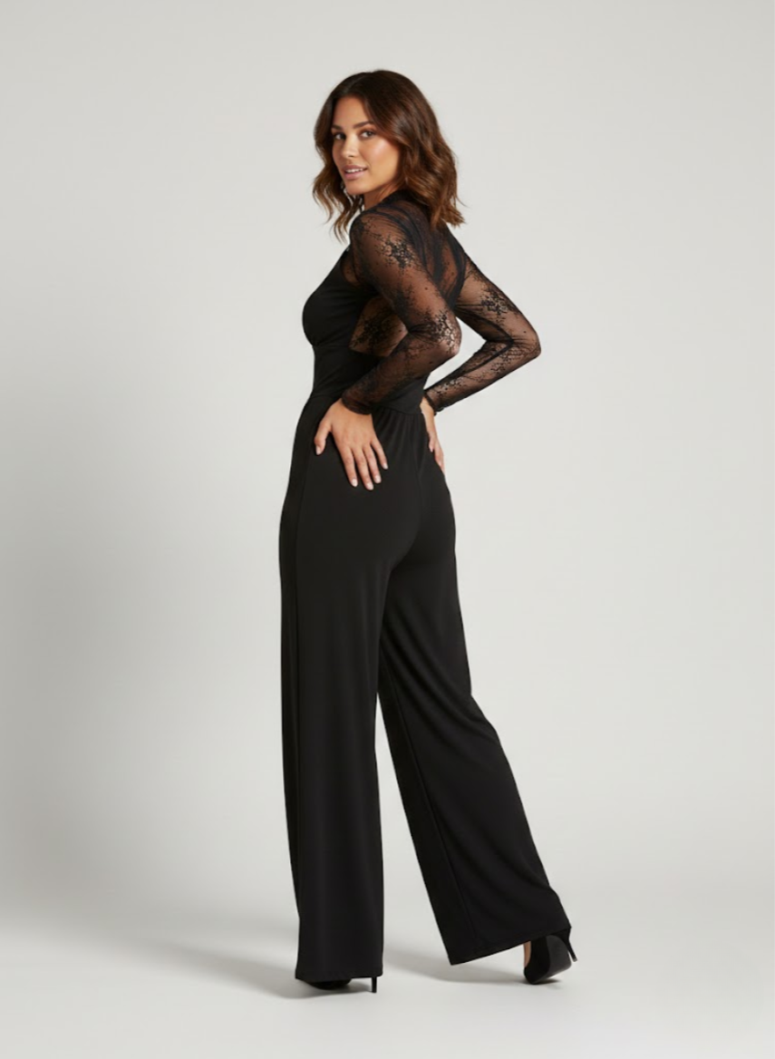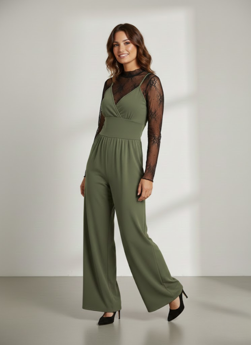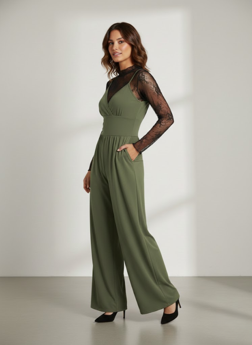 L’ensemble Solène™, composé d’une combinaison unie à poches et d’un haut à manches longues en dentelle, est conçu pour séduire par son élégance moderne et sa facilité à être porté au quotidien. Les manches en dentelle délicate apportent une note raffinée et féminine, tandis que le pantalon taille haute crée une silhouette flatteuse et équilibrée.